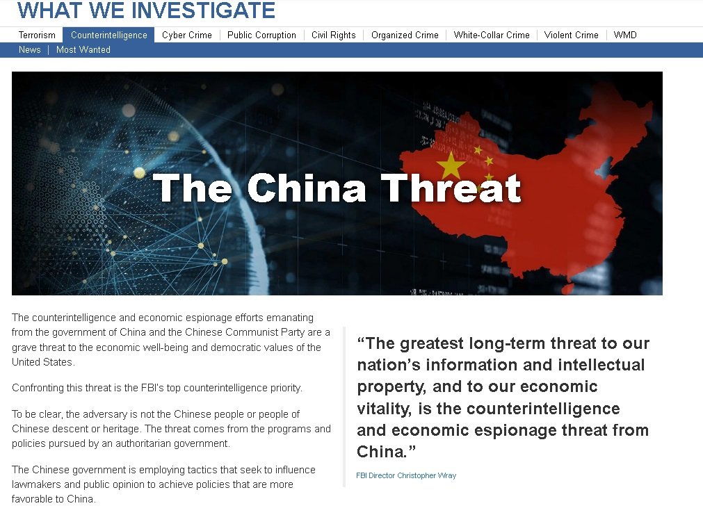 «Ամփոփելով այն, ինչ ակնհայտ է մեր հետաքննություններից, որոնցից ավելի քան երկու հազարը նվիրված են Չինաստանի կառավարության՝ մեր տեղեկատվությունը կամ տեխնոլոգիաները գողանալու փորձերին, պարզվում է, որ ոչ մի երկիր ավելի ակնհայտ վտանգ չի ներկայացնում մեր գաղափարների, նորարարությունների համար, քան Չինաստանը: Չինաստանի կառավարությունը գողանում է ապշեցուցիչ քանակությամբ տեղեկատվություն և լուրջ վնաս է պատճառում արդյունաբերության լայն շրջանակին», - ասաց Ռեյը: