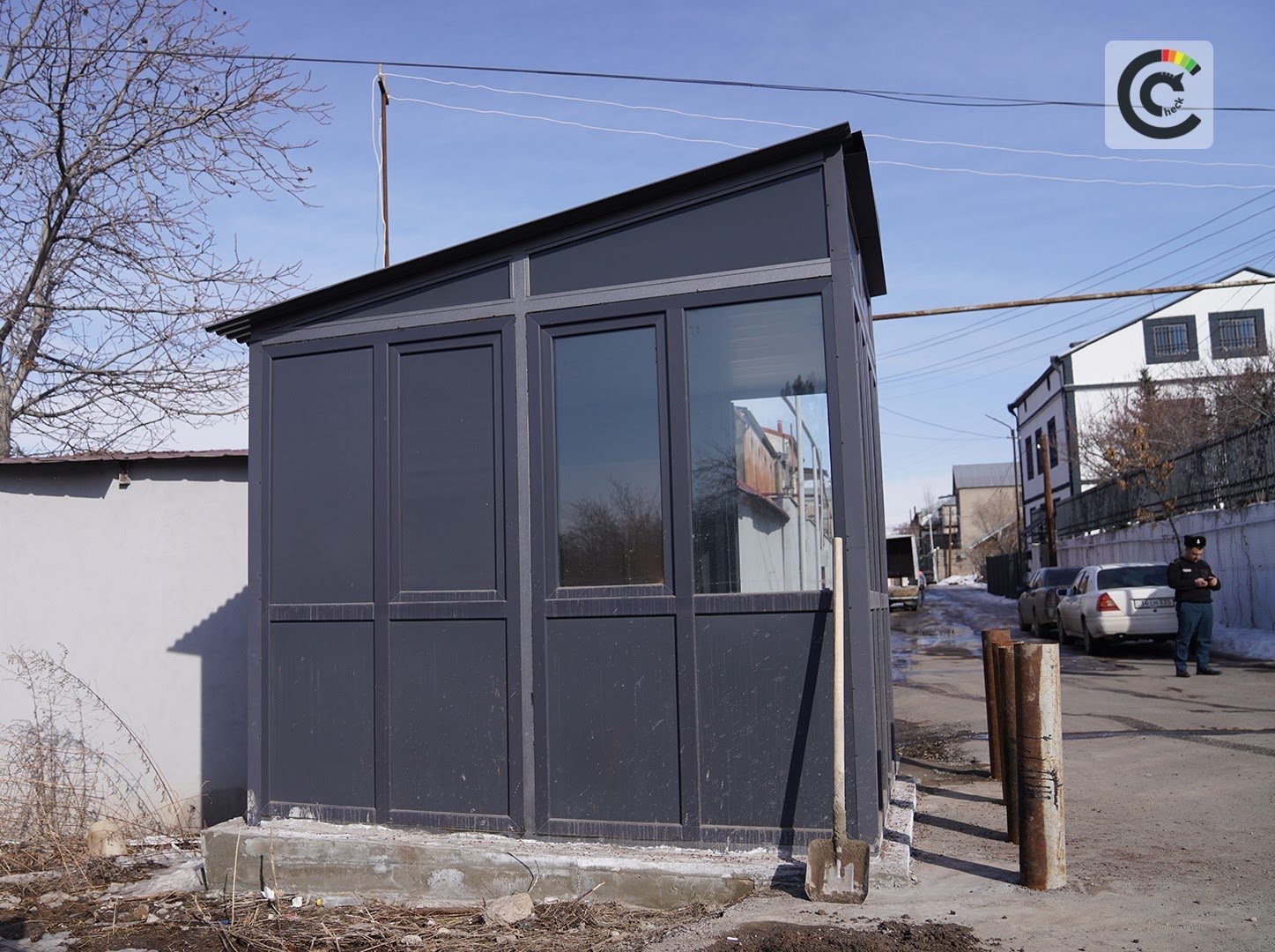 Ջրվեժում Սիմոնյանների առանձնատան հարևանությամբ գնտվող ոստիկանական պահակակետը։ Առանձնատունը երևում է աջ կողմում։