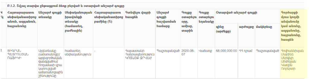 Սիմոնյանը՝ կասկածելի գույքային բարելավման մասին