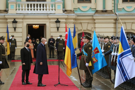 Թուրքիայի նախագահ Ռեջեփ Թայիփ Էրդողանը Կիև կատարած պաշտոնական այցի ընթացքում, տեղական իշխանությունների ավանդույթի համաձայն, ողջույններ է փոխանակել զինվորական պահակախմբի հետ։
