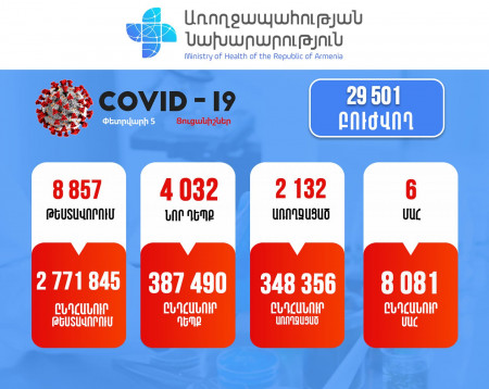 Հայաստանում արձանագրվել է կորոնավիրուսի 4032 նոր դեպք