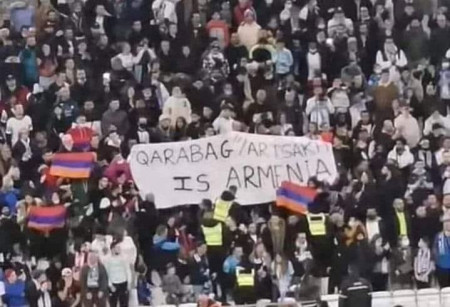 «Արցախը Հայաստան է». Մարսելում հայ երկրպագուները ադրբեջանական ակումբի հետ հանդիպման ժամանակ բարձրացրել են պաստառներ և հայկական դրոշը. Լուսանկար
