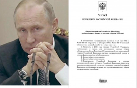 ՌԴ նախագահ Վլադիմիր Պուտինը ստորագրել է հրամանագիր ռուս պահեստազորին զինվորական պատրաստության զորակոչելու մասին։