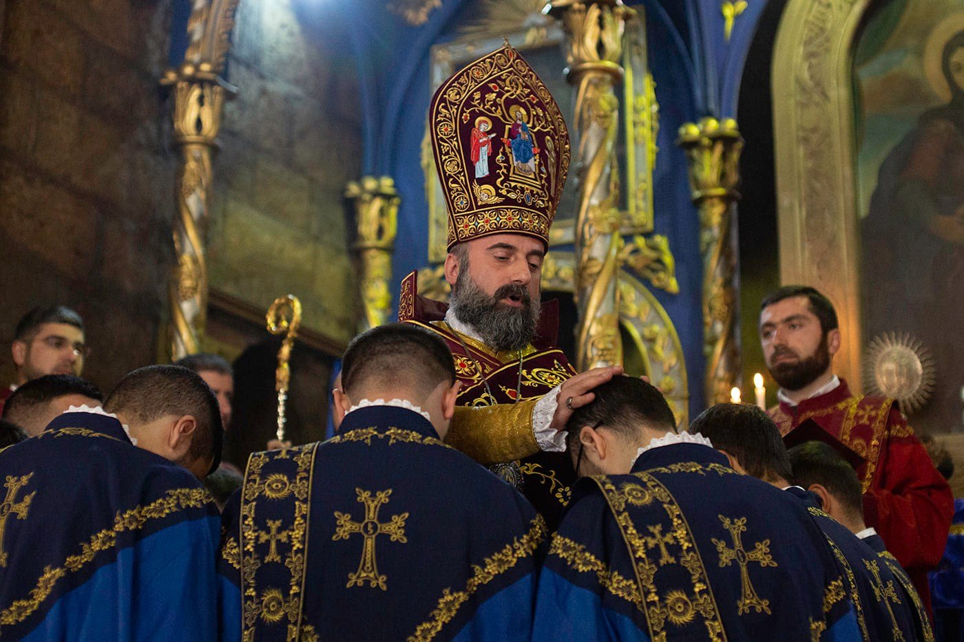 Սուրբ Պատարագի ընթացքում Արմաշ Սրբազանը, քահանայության կոչելով նորընծաներին, Սրբալույս Մյուռոնով օծեց նրանց ճակատներն ու ձեռքերը, ինչպես նաև նորաօծ եկեղեցականներին շնորհեց նոր հոգևոր անուններ: Բարեշնորհ Կամո սարկավագ Թազայանը վերակոչվեց Տեր Ղևոնդ քահանա, Դավիթ սարկավագ Մովսեսյանը՝ Տեր Ադամ քահանա, Արտաշես սարկավագ Ներսիսյանը՝ Տեր Վարդան քահանա, Սպարտակ սարկավագ Իսրայելյանը՝ Տեր Արսեն քահանա, Հրաչ սարկավագ Սուլթանյանը՝ Տեր Արտակ քահանա, Եղիշե սարկավագ Հարությունյանը՝ Տեր Հովսեփ քահանա, Սարգիս սարկավագ Մկրտչյանը՝ Տեր Դանիել քահանա և Դավիթ սարկավագ Հունանյանը՝ Տ․ Հարություն քահանա։ Ապա նորաօծ քահանաներն իրենց անդրանիկ օրհնությունը փոխանցեցին ներկաներին:
