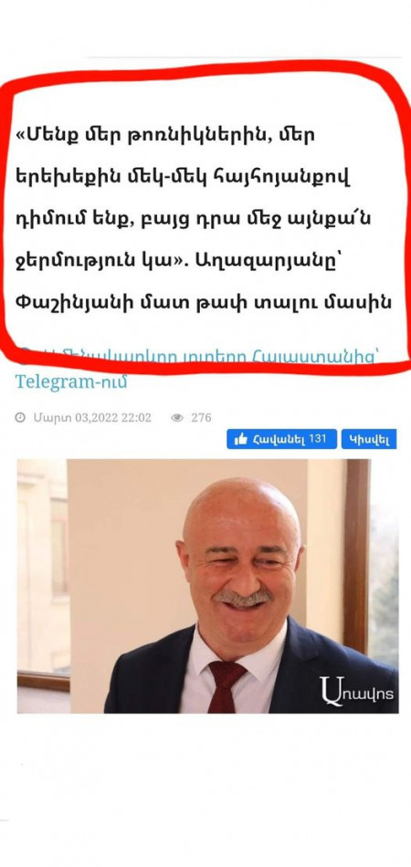 Հովի՛կ, ֆյուրեր Նիկոլիդ հայհոյանքներից, որքան հասկանալի է, դու ու քո նմաններն են ջերություն ստանում և շատ լավ կլինի, որ Նիկոլը ոչ միայն իր մատը, այլև ուրիշ բանը թափ տա քո ու քո ընտանիքիդ վրեն...