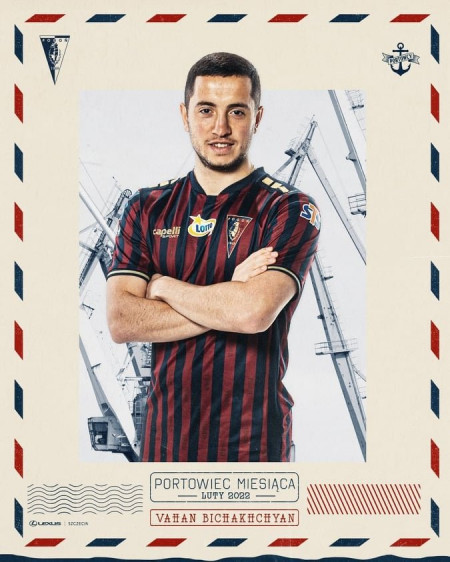 Հայաստանի հավաքականի կիսապաշտպան Վահան Բիչախչյանը ճանաչվել է լեհական «Պոգոնի»՝ նախորդ ամսվա լավագույն ֆուտբոլիստ։