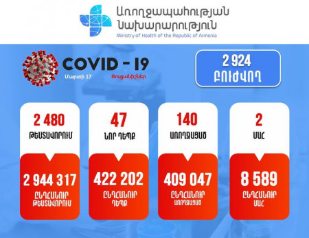 Հայաստանում արձանագրվել է կորոնավիրուսի 47 նոր դեպք, 2 մահ
