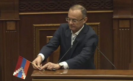 Սեյրան Օհանյանը ԱԺ ամբիոնին տեղադրեց Արցախի դրոշը՝ կոչ անելով պահպանել այն։