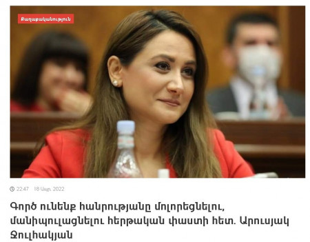 Սակայն Ջուլհակյանի «քաղաքական տերերի» այսօրվա առաջարկն ավելի վատն է, քան 1997-ի «հակամարտության կարգավորման» փուլային առաջարկը, և դա այնքան ակնհայտ է, որ նույնիսկ Նիկոլի կողմնակիցները չեն շտապում պաշտպանել «կարգավորման» այս տարբերակը։ Սակայն առանց «одобрямс»-ի Նիկոլի առաջարկները կարող են մնալ «օդում կախված», և դրա համար անհրաժեշտ է, որ արուսյակջուլհակյանները «ձայն հանեն» այս հարցով, որպեսզի տեղեկատվական աղմուկը բարենպաստ պայմաններ ստեղծի Նիկոլի համար։
