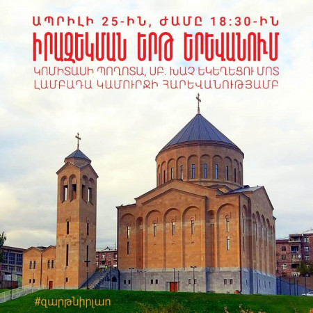 Հանդիպում ենք այսօր՝ ժամը 18։30-ին, Կոմիտաս պողոտայի Սուրբ Խաչ եկեղեցու մոտ («Լամբադա» կամրջի հարևանությամբ):