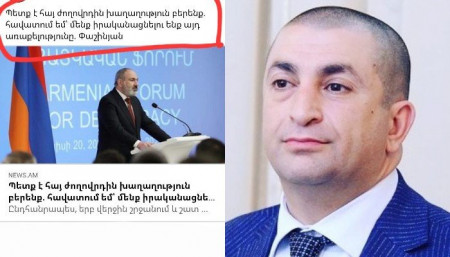 Քաղաքագետ Գագիկ Համբարյանի գրառումը. «Հայ ժողովրդին դիտավորյալ պատերազմի մեջ ներքաշած, հայ ժողովրդին թուրքերի և աշխարհի դեմ նսեմացրած, նվաստացրած և պարտված ժողովրդի պիտակ կպցրած, հայ ժողովրդին պատկանող Արացխի պատմական տարածքները մի ստորագրությամբ թուրքին նվիրած սույն կերպարը՝ Նիկոլ Անհողը, հայտարարում է, որ «հայ ժողովրդին խաղաղություն է բերելու»....