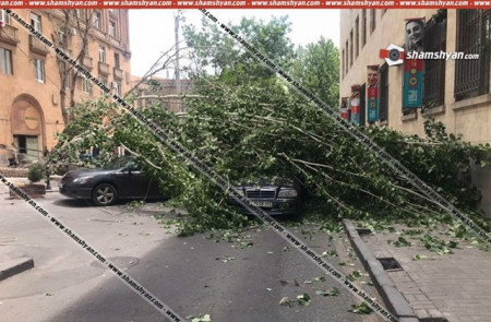 Երևանի կենտրոնում հաստաբուն բարդին արմատից պոկվել և տապալվել է՝ վնասելով մի քանի ավտոմեքենաներ