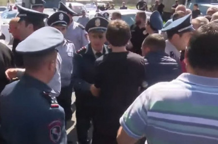 Ոստիկանների ու ցուցարարների միջև հրմշտոց սկսվեց, սակայն քիչ անց հանդարտվեց: Ոստիկանները պահանջեցին բացել ճանապարհը, սակայն ակցիայի մասնակիցները հրաժարվելցին՝ վանկարկելով՝ «առանց Նիկոլ Հայաստան»: