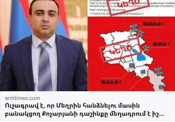 Ուշագրավ է, որ Շուշին ու Հադրութը հանձնածները դեռ խոսում են, որ իբր ժամանակին Քոչարյանը տվել է Մեղրին ՝ էն Մեղրին, որ հիմա ՀՀ տարածքում է