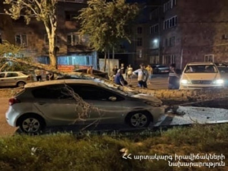 Պարզվել է, որ քամուց ծառը կոտրվել և ընկել է բակում կայանած «Mitsubishi Pajero iO» և «Toyota Prius» մակնիշների ավտոմեքենաների վրա: