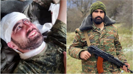 Հ․Գ․ Վիրակապով լուսանկարը՝ 44-օրյայի ժամանակ գլխի շրջանում բեկորային վիրավորում ստանալու օրերին։