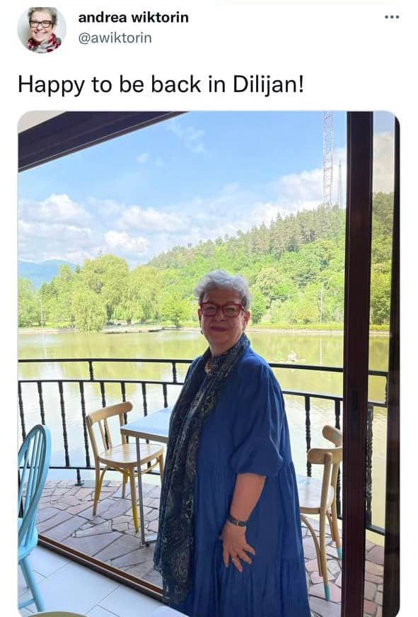 Մինչ ընդդիմությունն իր բողոքի ձայնն էր բարձրացնում ԵՄ դեսպանատան մոտ, տիկին Անդրեա Վիկտորինն այդ նույն պահին Թվիթերում Սևանից և Դիլիջանից անհոգ լուսանկարներ էր տեղադրում։ Նիկոլ Փաշինյանի առջև բառիս ուղիղ իմաստով կզելու մեծ վարպետ տիկնոջ այս պահվածքն ակնհայտ քաղաքական ցինիզմ է, բայց դե մեզ էլ ոչնչով չեք կարող զարմացնել։