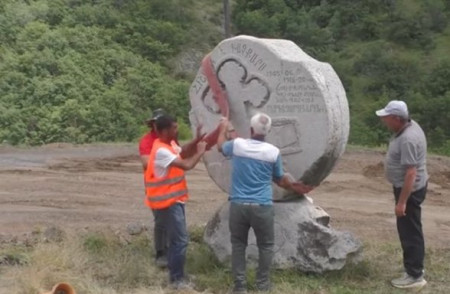 Ադրբեջանցիները տեղափոխել են Բերձորի ճանախարհին տեղադրված խաչքարը. Տեսանյութ