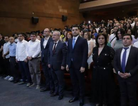 Հիշեցնենք, որ նա ներկա էր նախորդ երկու նման արարողություններին․ մեկը՝ Երեւանի պետական համալսարանի ավարտական միջոցառմանը, մյուսը՝ Պոլիտեխնիկական համալսարանի: