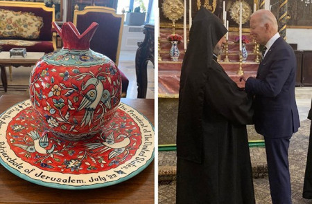 «Հուլիսի 15-ին ԱՄՆ նախագահ տիար Ջո Բայդենը այցելեց Բեթղեհեմի ԾՆնդյան տաճարի հայկական եկեղեցի և հանդիպում ունեցավ Երուսաղեմի հայ պատրիարք Ամեն. Տ. Նուրհան արք. Մանուկյանի հետ: