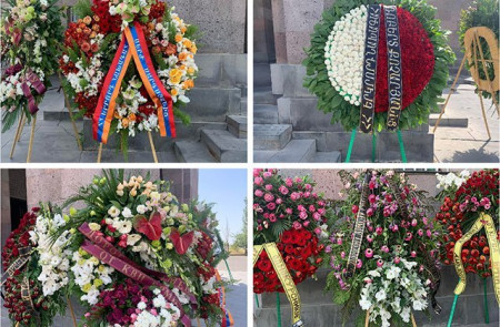Բազմաթիվ պսակների թվում՝ նաև ծաղկեպսակ Արմեն Գրիգորյանի՝ կալանավայրի ընկերներից