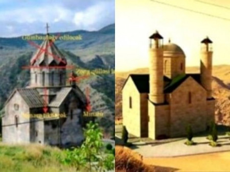 Նա պատմեց, որ Ադրբեջանի «Հուշարձանների պաշտպանության հասարակական միավորում» կազմակերպությունը նախագծի վերաբերյալ նաեւ լուսանկար է հրապարակել։ Ըստ նախագծի, ապամոնտաժվում է գմբեթի վեղարն ու զանգակատունը, կցակառուցվում՝ երկու մինարեթներ։