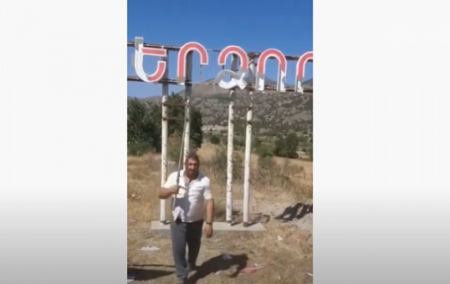 Ինչպես են ադրբեջանցիները կոտրում օկուպացված Բերձորի ցուցանակը. Տեսանյութ
