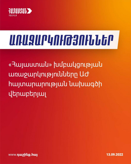 «Հայաստան» խմբակցությունը առաջարկում է հետևյալ չորս կետերն ամբողջությամբ ներառել ԱԺ հայտարարության նախագծում