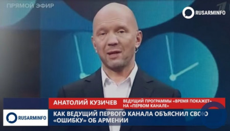 Ռուսական Առաջին ալիքի Время покажет հաղորդման հաղորդավար Անատոլի Կուզիչովը ներողություն է խնդրել՝ երեկ եթերի ժամանակ թույլ տված սխալի համար։