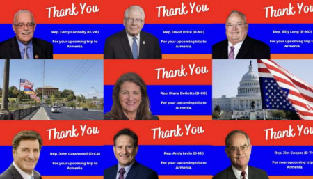 Ամերիկայի հայ դատի հանձնախմբից տեղեկացնում են, որ հայտնի են ԱՄՆ այն կոնգրեսականների անունները, որոնք մոտ օրերս ժամանելու են Հայաստան։ «Շնորհակալություն կոնգրեսականներ Էնդի Լևինին, Ջիմ Կուպերին, Բիլի Լոնգին, Դիանա Դեգետտին, Ջերի Կոնոլլիին, Ջոն Գարամենդիին և Դեյվիդ Փրայսին Հայաստան կատարելիք CODEL (Congressional Member Delegation) ուղևորության համար»,- ասված է հաղորդագրությունում։