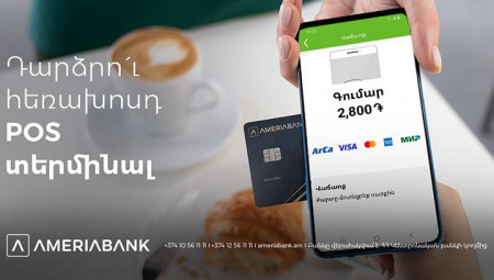 Ամերիաբանկը գործարկել է անհպում անկանխիկ վճարումների նոր գործիք` Ameria PhonePOS կամ ՀեռաPOS, որը հնարավորություն է տալիս սմարթֆոնը դարձնել POS տերմինալ և ստանալ վճարումներ ցանկացած վայրում` հարմար, արագ և հուսալի եղանակով: