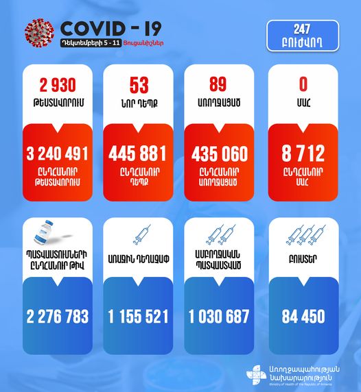 ՀՀ առողջապահության նախարարությունը ներկայացնում է կորոնավիրուսային հիվանդության իրավիճակը Հայաստանում: