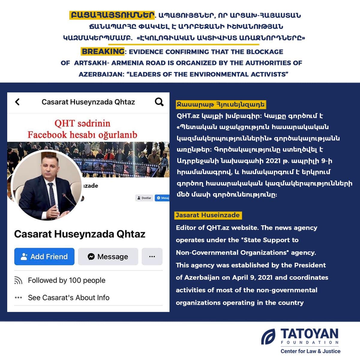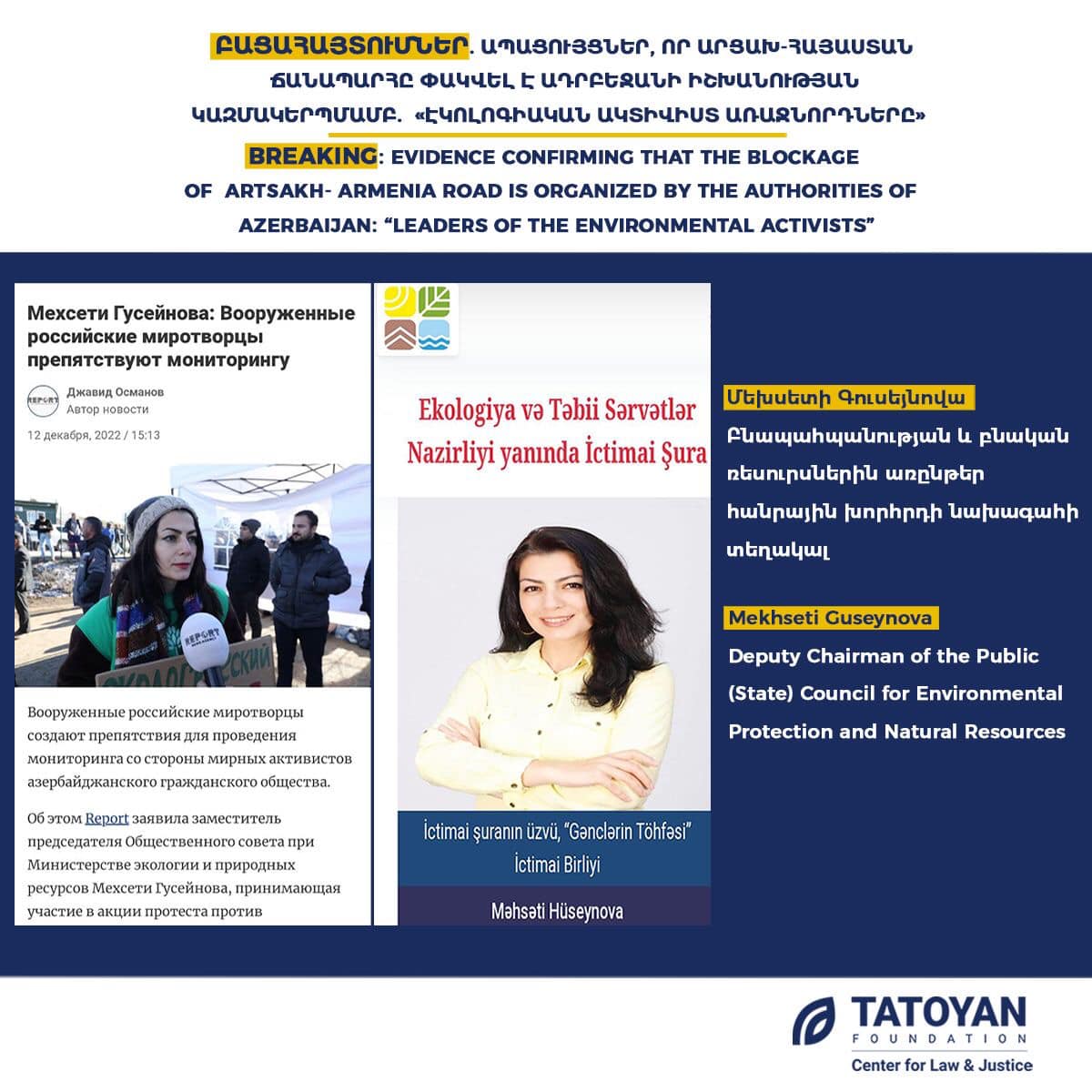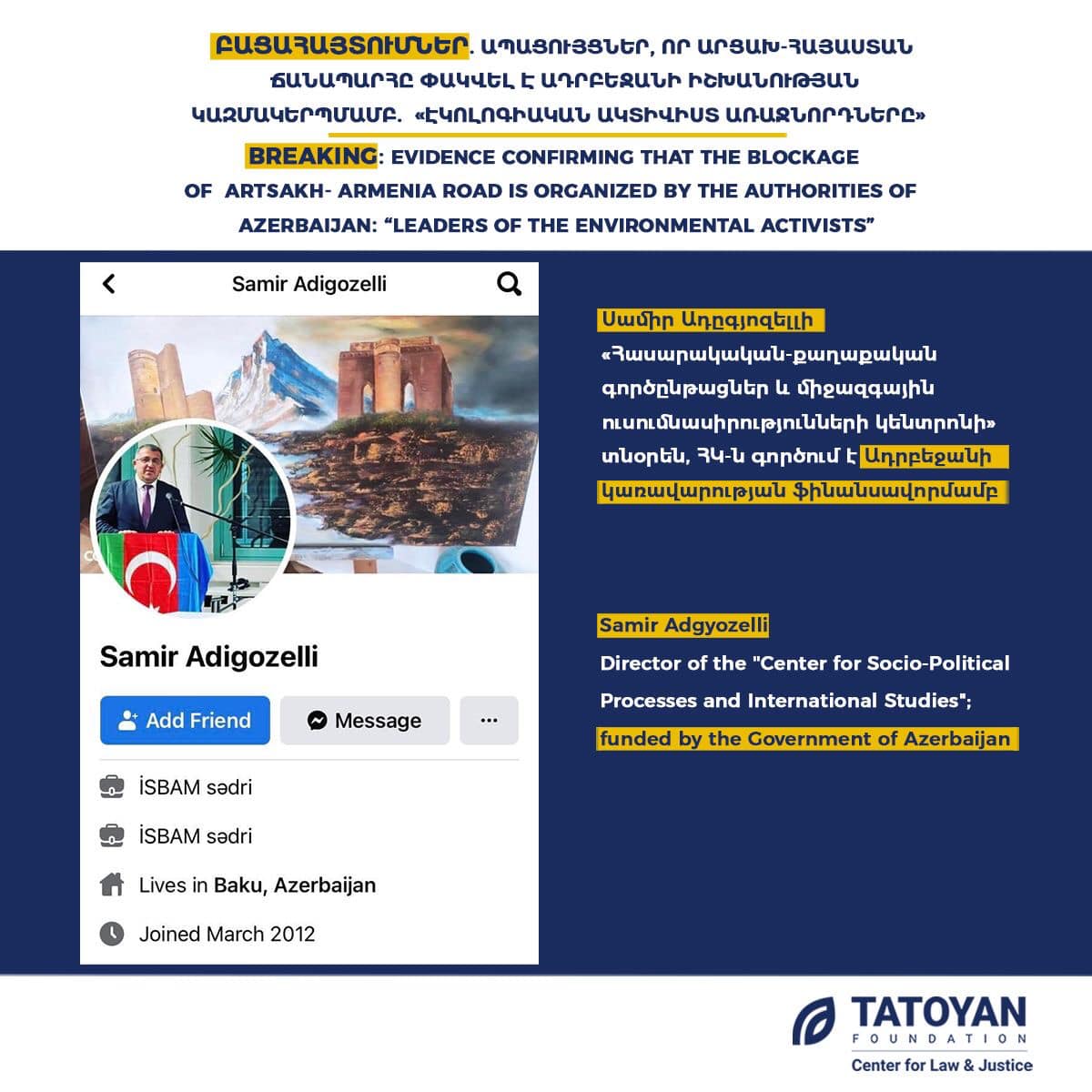 Ովքեր են Արցախ-Հայաստան ճանապարհը փակած ադրբեջանական էկոակտիվիստ առաջնորդները․«Թաթոյան» հիմնադրամի բացահայտումները