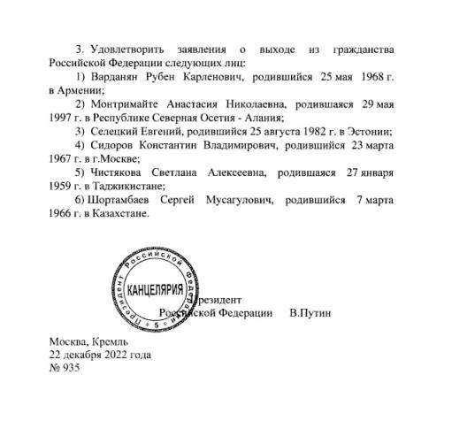 Պուտինը ստորագրեց Ռուբեն Վարդանյանի՝ ՌԴ քաղաքացիությունից հրաժարվելու դիմումը