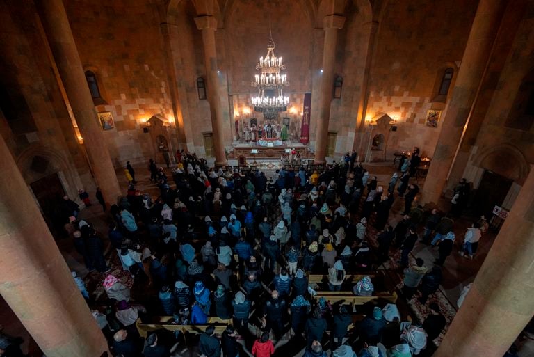 Եկեղեցին լիքն էր հավատավոր մարդկանցով, ովքեր եկել էին եկեղեցում դիմավորելու Նոր Տարին: