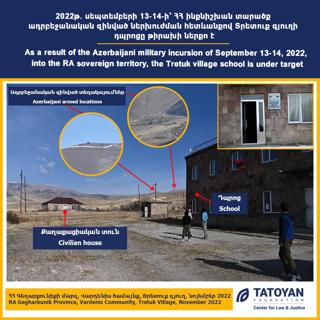 Այս փաստերն արձանագրվել են Իրավունքի և արդարության կենտրոն «Թաթոյան» հիմնադրամի կողմից 2022թ. նոյմբերի 25-ին, դեկտեմբերի 29-ին մարզի սահմանային բնակավայրերում փաստահավաք աշխատանքների ժամանակ։