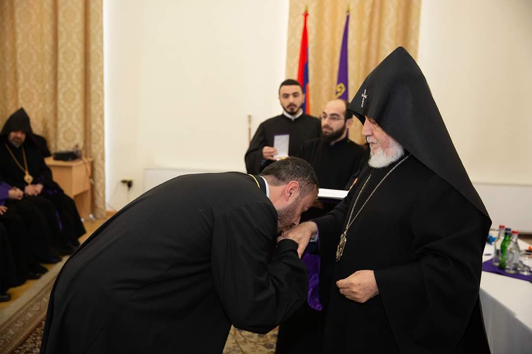 Ապա Ամենայն Հայոց Հայրապետը շնորհավորեց պարգևների ու պատիվների արժանացած եկեղեցականներին՝ մաղթելով արդյունավետ ծառայություն ու նորանոր ձեռքբերումներ իրենց տերունապատվեր առաքելության մեջ։