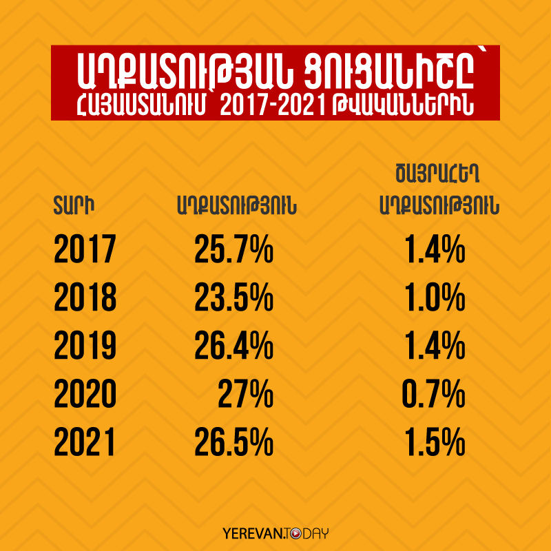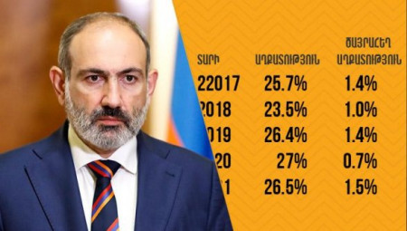 Այս խոսքերի հեղինակը ՀՀ վարչապետ Նիկոլ Փաշինյանն է 2018 թվականի մայիսի 1-ին: Իսկ նույն թվականի նախընտըրական քարոզարշավի ժամանակ ասում էր, որ ամոթ է ունենալ ծայրահեղ աղքատություն, հետո էլ խոստանում 5 տարվա մեջ կրճատել ծայրահեղ աղքատությունը, իսկ աղքատությունն էլ իջեցնել տասը տոկոսային կետով: Ըստ Վիճակագրական կոմիտեի տվյալների՝ աղքատության մակարդակը 2021 թ․–ին Հայաստանում կազմել է 26.5 %: Սա նշանակում է, որ ամեն 3–րդ մարդն աղքատ է Հայաստանում։ 2020 թ.-ին այս ցուցանիշը կազմել է 27 %, որը 0.6 %–ով գերազանցում է 2019 թ․–ի տվյալները։ Ավելին՝ ծայրահեղ աղքատության մակարդակը 2021 թ․–ին կազմել է 1.5 տոկոս, որը 2.1 անգամ ավելի է 2020 թ․-ին արձանագրված ցուցանիշից՝ 0.7 տոկոս: Ինչպե՞ս են հաշվարկվել այս թվերը Ըստ Վիճակագրական կոմիտեի գնահատականների՝ 2021 թ․–ն աղքատ է համարվել այն մարդը, ով ամսական 57 744 դրամից [140$] քիչ է ծախսել: