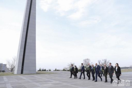 Հյուրերը ծաղիկներ են խոնարհել Հայոց ցեղասպանության հիշատակը հավերժացնող անմար կրակի մոտ, լռությամբ հարգել Սուրբ նահատակների հիշատակը: