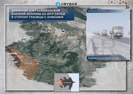 Ավտոշարասյունը՝ հավանաբար կադրերով կամ զինամթերքով, շարժվում է դեպի Հայաստանի սահման՝ Վարդենիսի ուղղությամբ։