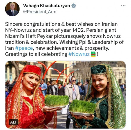 ՀՀ նախագահը շնորհավորել է Իրանին Նովրուզի կապակցությամբ Բաքվի «կենտրոնական, հայտնի փողոցից»
