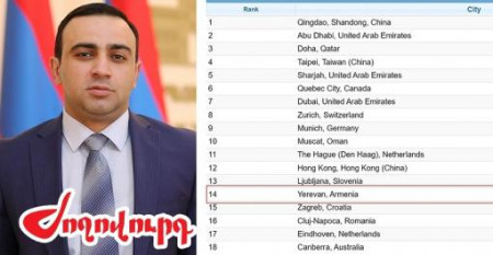 Ըստ Numbeo-ի՝ իսկապես, Երեւանը 14-րդ «անվտանգ» քաղաքն է, ցանկը գլխավորում է Արեւելյան Չինաստանում գտնվող Ցինդաո քաղաքը, երկրորդ հորիզոնականում ԱՄԷ-ի մայրաքաղաք Աբու Դաբին է, իսկ երրորդը՝ Կատարի մայրաքաղաք Դոհան։