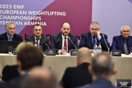 Ի սկզբանե բանախոսների համար նախատեսված սեղանին դրված էին այն մարդկանց անունները, որոնք պետք է մասնակցեին մամուլի ասուլիսին: Ի սկզբանե դրված էին վարչապետի աշխատակազմի ղեկավար Արայիկ Հարությունյանի, Եվրոպայի ծանրամարտի ֆեդերացիայի նախագահ Անտոնիո Կոնֆլիտտի, Կրթության, գիտության, մշակույթի եւ սպորտի փոխնախարար Կարեն Գիլոյանի եւ «Հայաստանի ծանրամարտի ֆեդերացիա» ՀԿ նախագահ Հրաչյա Ռոստոմյանի անունները: