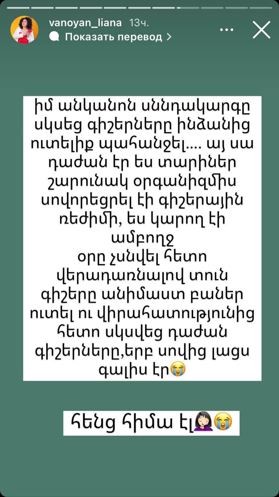«Վիրահատությունից հետո սկսվեցին դաժան գիշերները, երբ սովից լացս գալիս էր». Լիանա Վանոյան