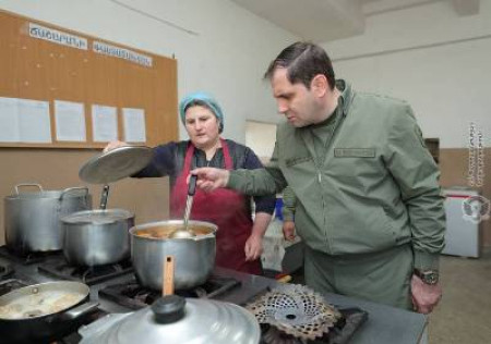 Պաշտպանության նախարար Սուրեն Պապիկյանն այցելել է զորամաս եւ հետեւել, թե ինչ ճաշ են տալիս զինվորներին: Նրա խոժոռ հայացքը, անշուշտ, զգաստացրել է խոհանոցի աշխատողներին, բայց լավ կլիներ՝ նման խիստ հայացքով նա հետեւեր բանակի սպառազինությանը, զինվորների կացարաններին, մեր սահմանամերձ դիրքերին ու զինպատրաստությանը»: