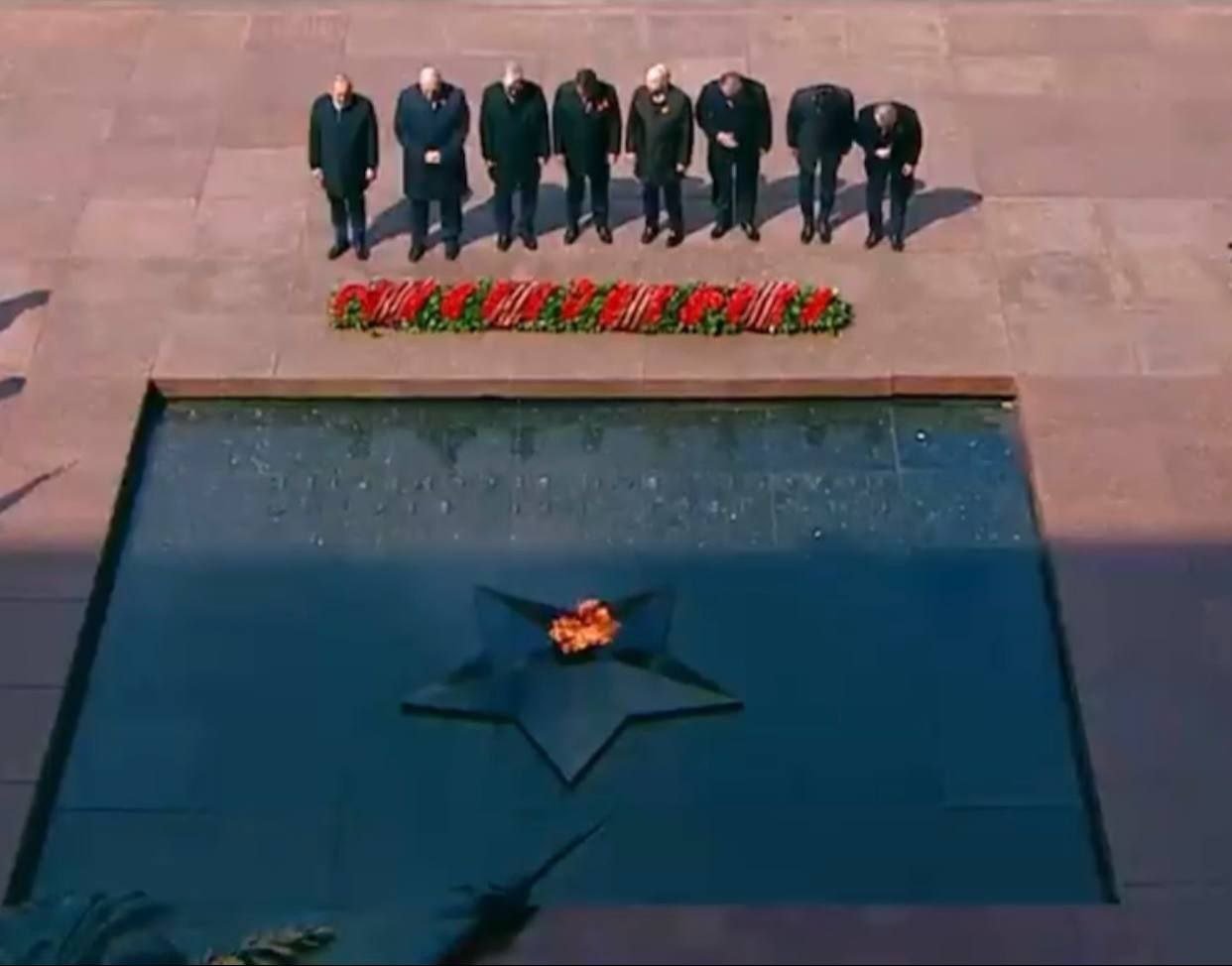 Զորահանդեսից հետո ՀՀ վարչապետը և մյուս երկրների առաջնորդները ծաղիկներ են խոնարհել անհայտ զինվորի հուշահամալիրին: