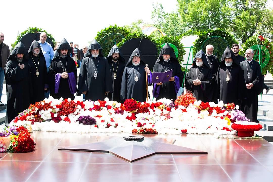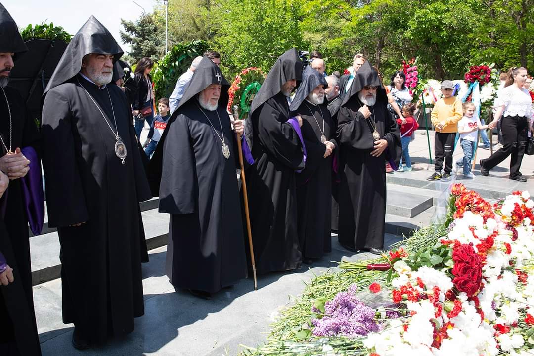 Անհայտ զինվորի հուշակոթողի մոտ ծաղկեպսակի զետեղումից հետո Վեհափառ Հայրապետն աղոթք բարձրացրեց առ Աստված հայրենիքի համար իրենց կյանքն ընծայաբերած քաջ հայորդյաց հոգիների հանգստության և խաղաղության համար: