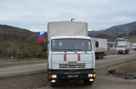 Ռուս խաղաղապահների ավտոտրանսպորտով Ստեփանակերտ է տեղափոխվել 269,7 տոննա մարդասիրական օգնություն