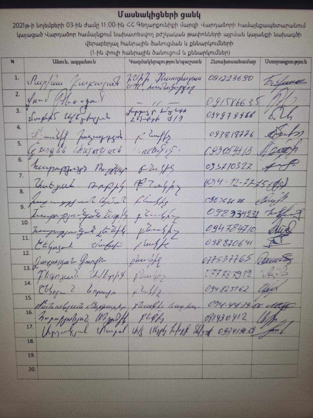 Տեղադրում եմ նաև այն քաղաքացիների ցանկը, որոնք կողմ