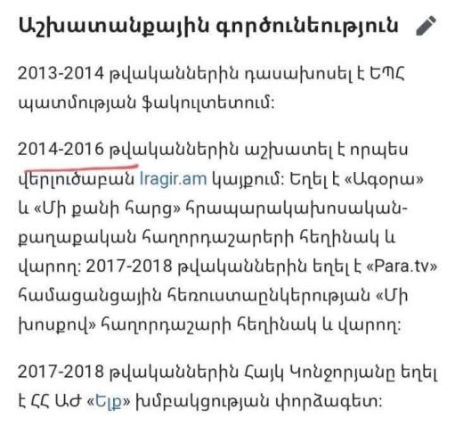 Տեղեկացնենք, որ Կոնջորյանը 2014-2016 թվականներին աշխատել է lragir.am կայքում՝ որպես վերլուծաբան: